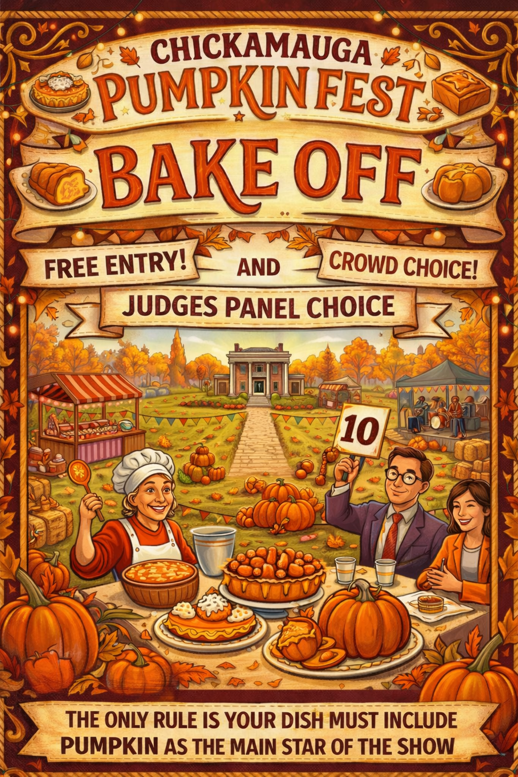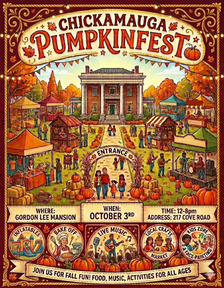 Current Festival Vending OpportunitiesWhere Hearthara Comes To Life Chickamauga Crawfish Fest 2026Join us for the Crawfish Show Down Competition. Do you have what it takes to win?April 18th, 2026 Homefront Heroes 2026Join in us while we support our Heroes!May 2nd, 2026 Apply To be a vendor MERCHANDISE VENDOR APPLICATION Chickamauga Down Home Days 2026Join in us for the 52nd Annual Down Home Days!May 16th, 2026 Apply to vend as a drink vendor Apply to vend as a food vendor MERCHANDISE VENDOR APPLICATION Rossville Bacon BashMay 30th, 2026 Apply to be a vendor Chickamauga Chicken & Waffle Festival June 13th, 2026 Apply to be a vendor Southern Makers & MercantileJoin in us to celebrate Appalachian Heritage!June 20th, 2026 Apply To be a vendor MERCHANDISE VENDOR APPLICATION Chickamauga Pumpkin FestOctober 3rd, 2026 Apply To be a vendor ENTER your baked goods here